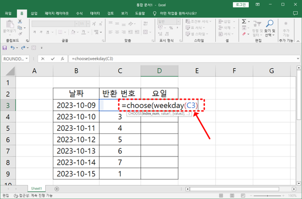 CHOOSE 함수로 요일을 한글로 변환하기